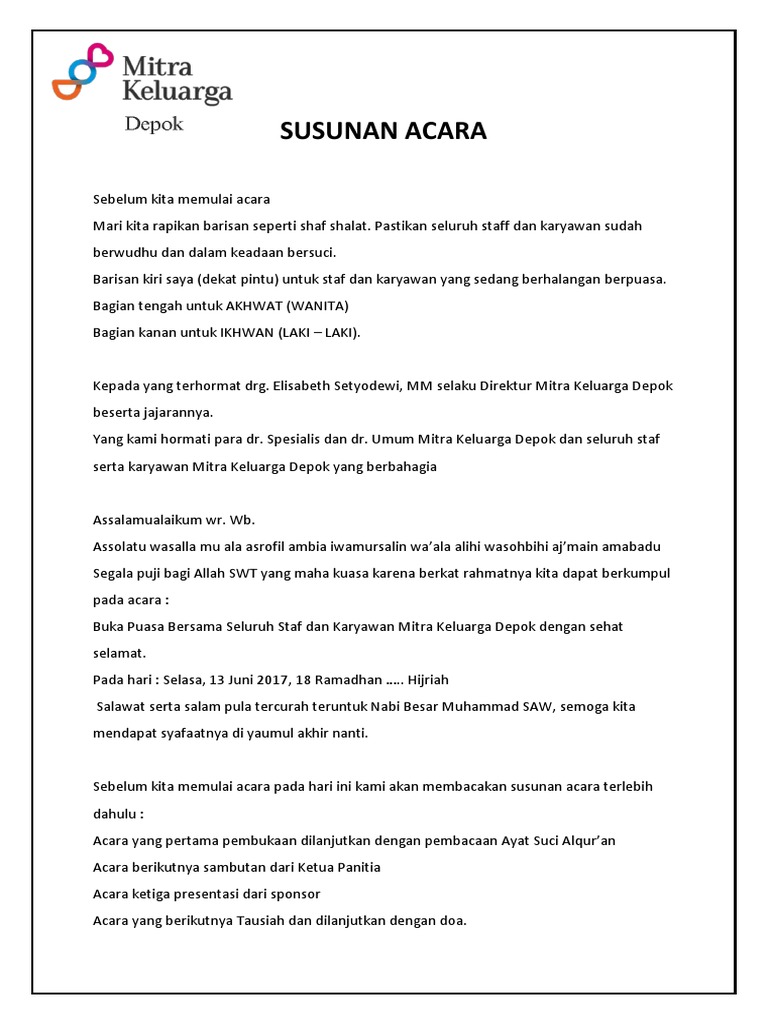 Thanks, sangat membantu naskahnya bagi saya yang tak terbiasa jadi mc. 8 contoh rundown acara berbagai event, lengkap! Rundown acara bukber & reuni dalaska 2011. Bulan ramadhan itu adalah bulan kepeduliaan, bulan… Jadi tak perlu ada rasa sungkan atau engga enak ketika tidak dapat menghadiri bukber.